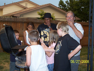 Anyways, we had a farewell bar-b-que with our friends and some of our family since it is Tim's last night in Colorado. The kids were already crying before bed because they were going to miss Daddy. During the BarBQue, we celebrated Tim's birthday with cake and the famous Chavetta's Chicken. (Tim, don't forget to pick up a case of it when you visit your parents in New York).